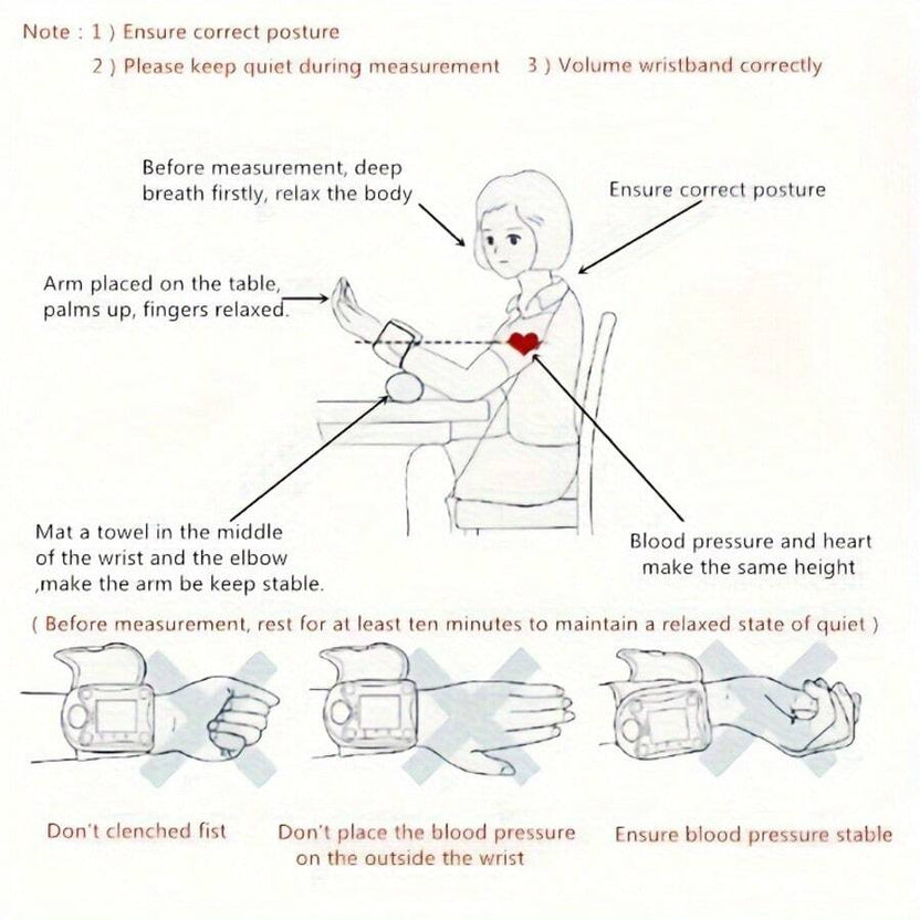 Tensiómetro digital de muñeca: pantalla LCD, voz, estuche portátil, contador de pulso de 5 colores
